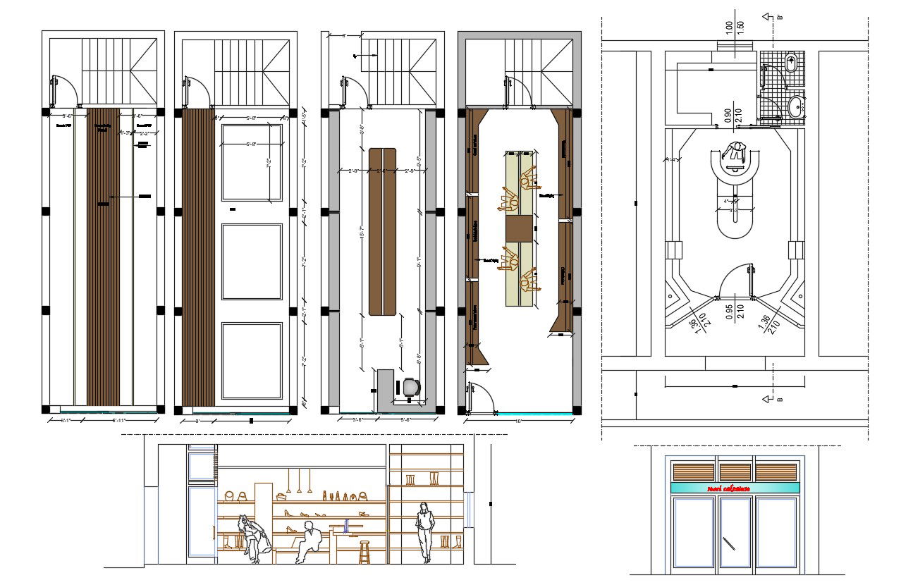 Ideas For Shop Floor Plan Cad Drawing Free Download;this is the floors plan of shop design includes ceiling details,furniture details,working dimension details,one internal elevation and one outside elevation and basic rendered drawing,its a CAD file format.