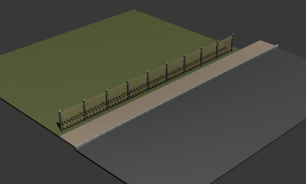 3D Compound Railing Wall Elevation Design MAX File; download free 3D MAX file of compound wall railing design isometric elevation view.