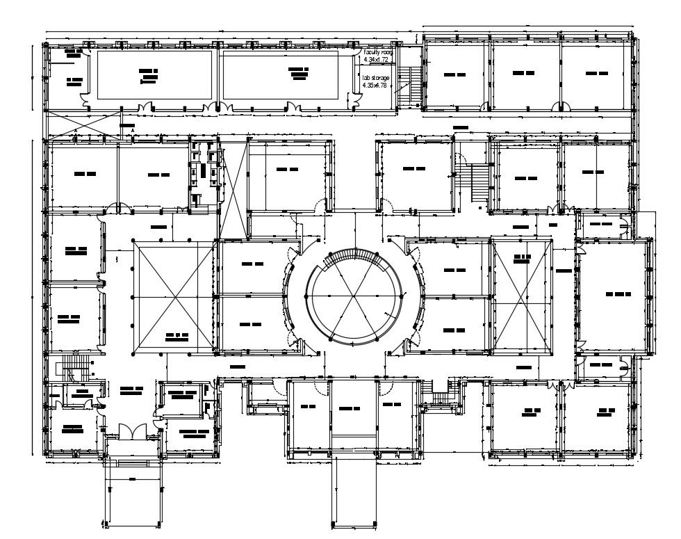 Tips For 2d Cad Drawing Of School Planning With Working Drawing Dimension Autocad File; this is the planning of school layout with working drawing, in this plan added waiting room , clerical office , principal office and room, many classrooms, account office, audiovisual room, attached toilets, common toilets, big passage to connect all area, circular stair in middle, and cutout, this is the DWG file format.