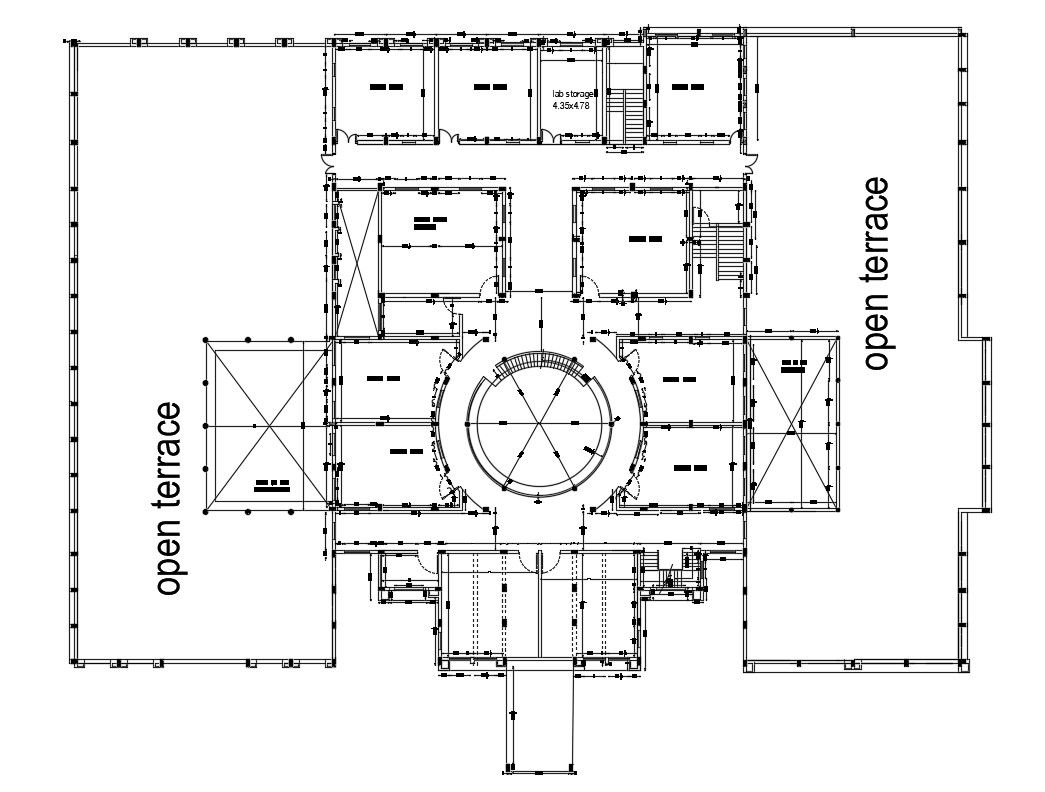 Best 2d Autocad Drawing Of School Planning With Working Drawing Dimension CAD File; this is the planning of school with terrace level, many classrooms, lab storage, circular stair in the middle, cut-outs, working dimension drawing, column demarcation plan and much more other details related to school.its a DWG file format.