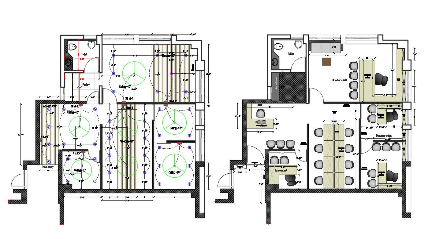 Use Autocad File Of Office Furniture Plan With Ceiling Design And Electrical CAD File; this is the furniture layout and ceiling design of the office, includes basic hatching details, dimension, and texting details, electrical plan, and much more other details related to office, its a DWG file format.