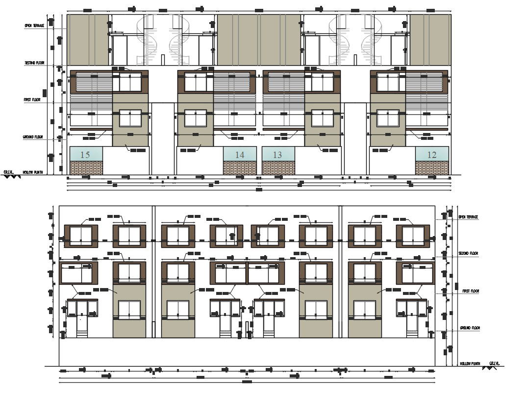 this is 4 storey house building elevation design CAD drawing which can be viewed from a number of different angles. You can also go with different outdoor designs, and each design place a significant role in what the final look client requirement. download AutoCAD file of house elevation design CAD drawing with dimensions details.
