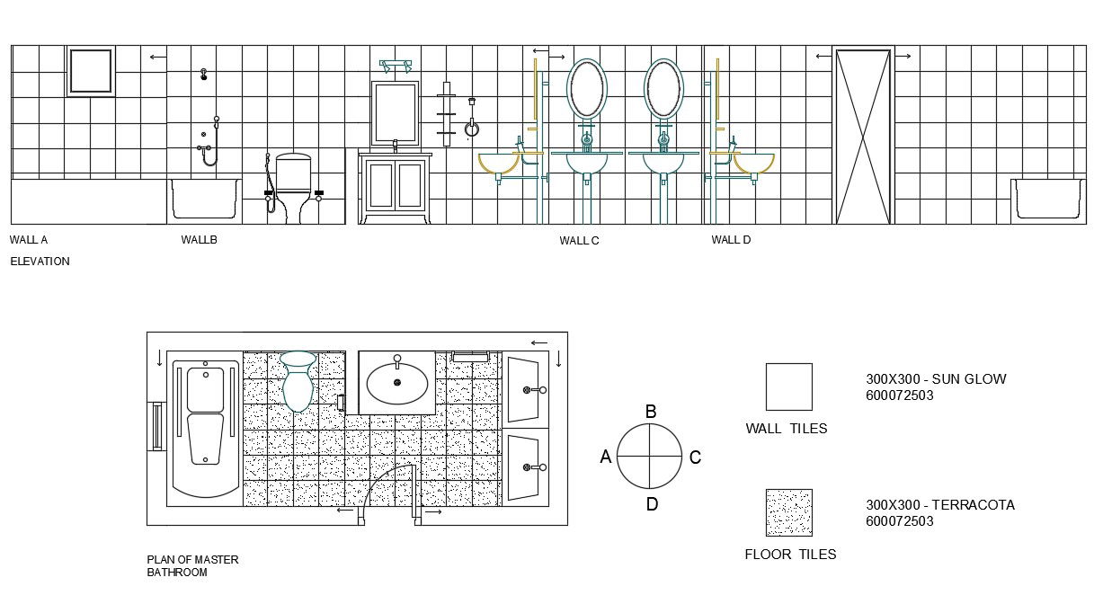 Best 2d Cad Drawing Toilet Layout Plan And Elevation Autocad File; this is the planning of master bathroom includes sanitary details plan, folded elevation of four sidewalls, tiles selection details, this is the details drawing of toilet working plan, its a DWG file format.