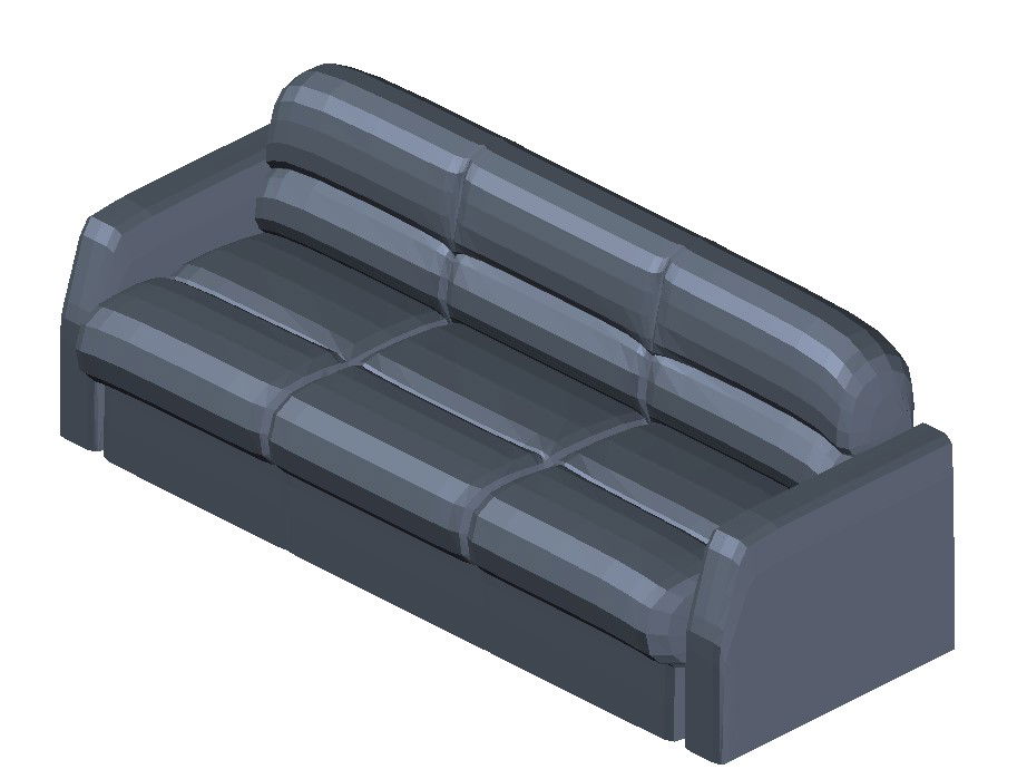 3D Sofa Design With Basic Rendered In AutoCAD File; this is the 3D CAD drawing of a three-seater sofa with basic rendered in DWG format.use in 3d model.