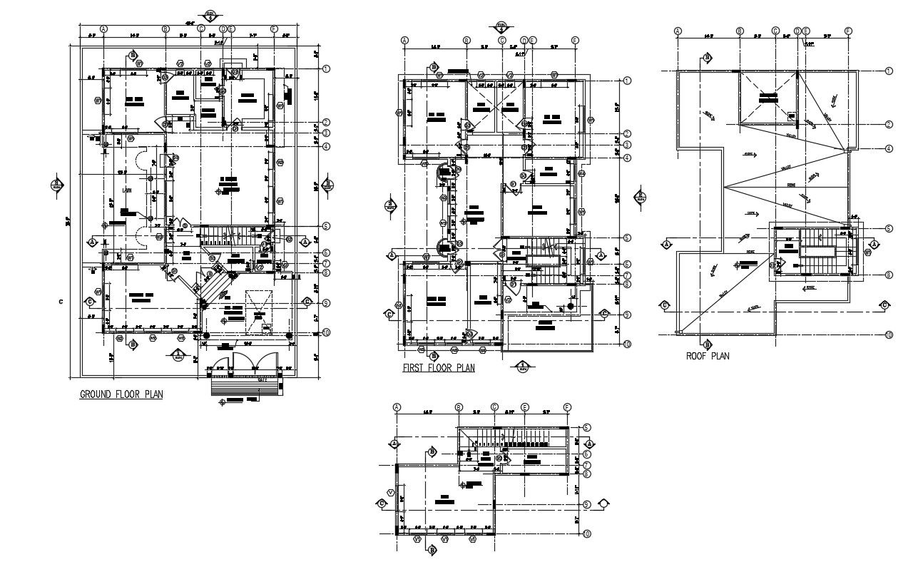 Learn How To Make Huge Bungalow Layout Floors Plan With Working Dimension Drawing Autocad File By Doing Less; this is the huge bungalow layout plans includes ground floor plan, first-floor plan, and roof plan some details of stairs, center line plan, working dimension drawing, text details and much more other details related to good bungalow, its a CAD file format.