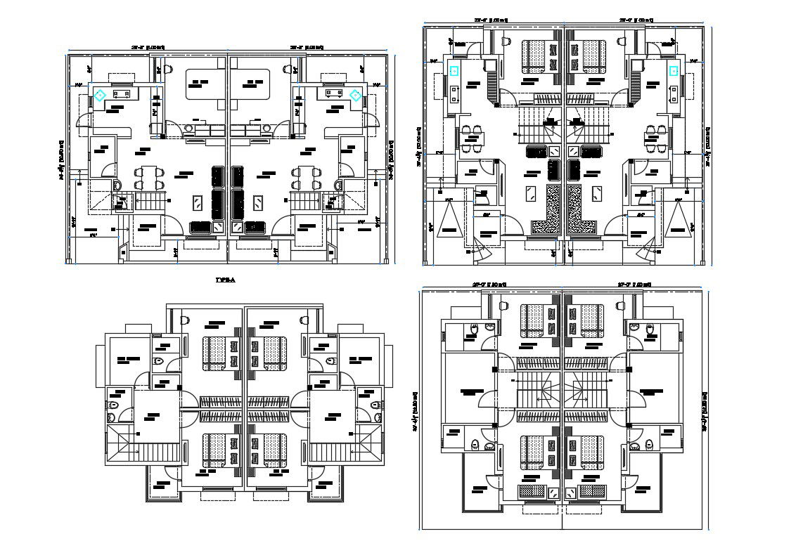 2D CAD Drawing Best Twin Bungalow Floor Plans With Furniture Layout Autocad File Tips