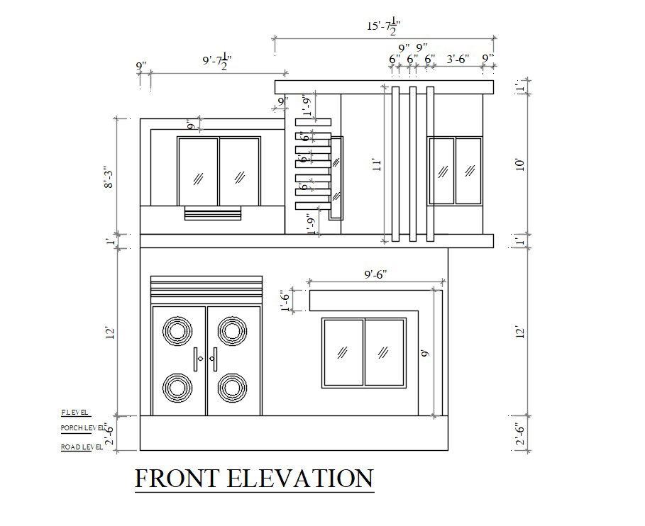 Download Free Simple House Front Elevation Design AutoCAD File
