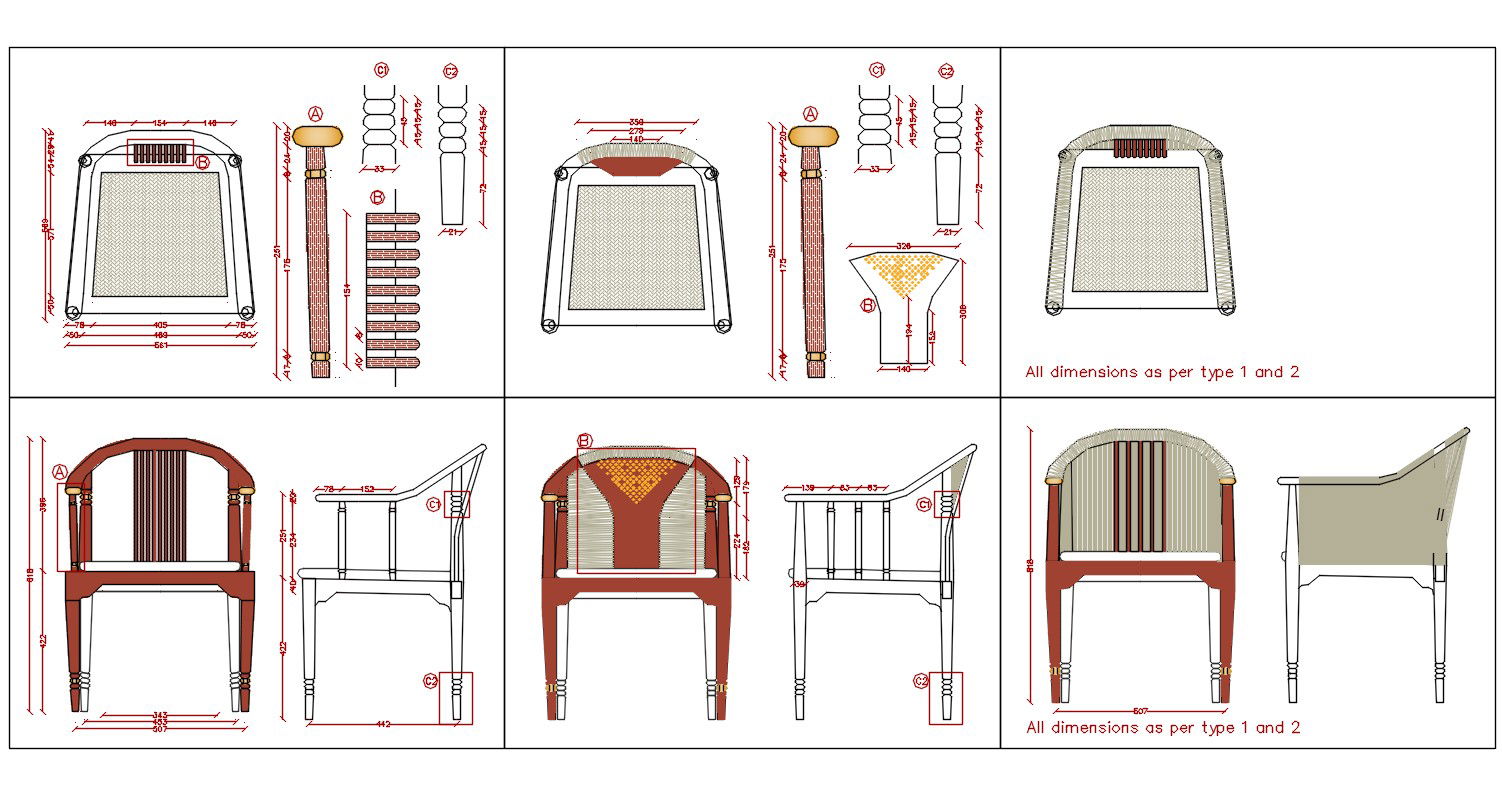 Download Free Wooden Arm Chair Elevation Design AutoCAD File