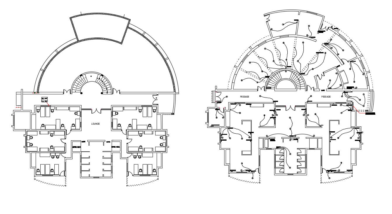 CAD drawing details of commercial building design furniture layout plan along with electrical installation details in the building, building rooms, staircase, electrical wiring, and building various other amenities details download AutoCAD file.