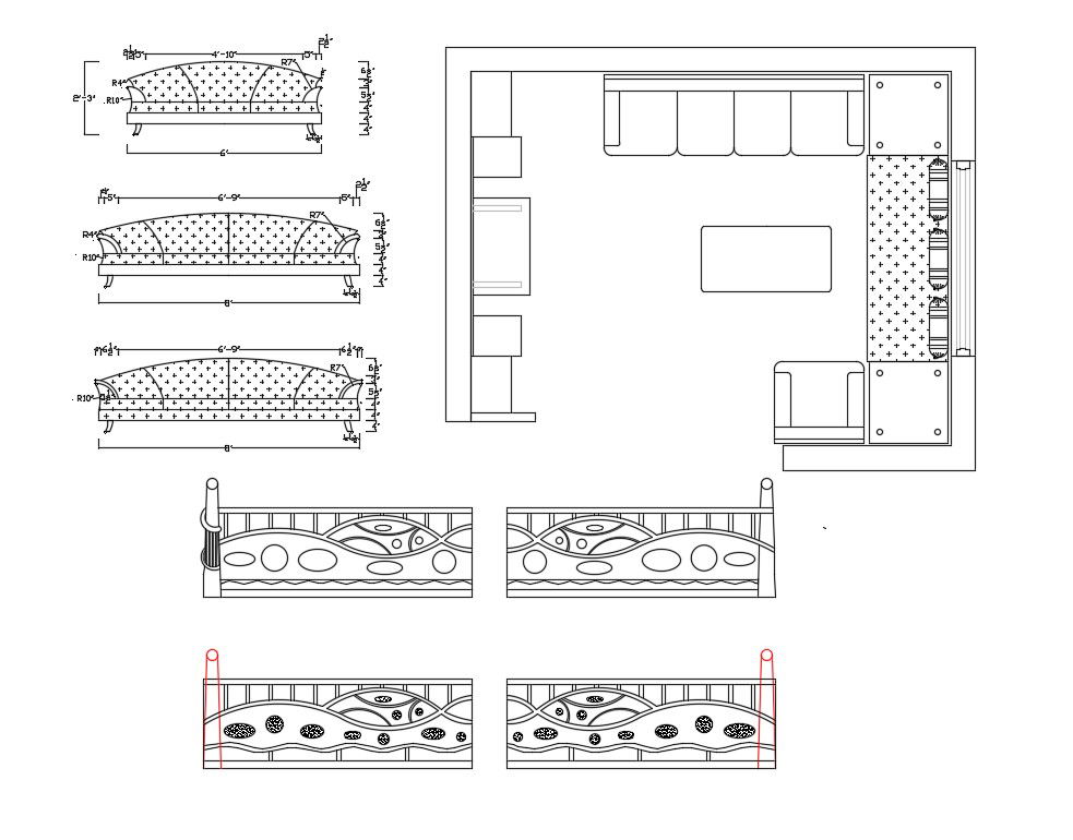 Room Plan and Sofa Set Furniture Blocks Layout Drawing