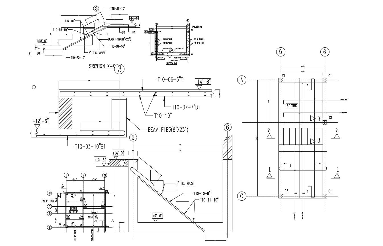 this is the reinforcement section CAD drawing shows staircase and beam with description detail download free DWG file of reinforcement section CAD drawing.