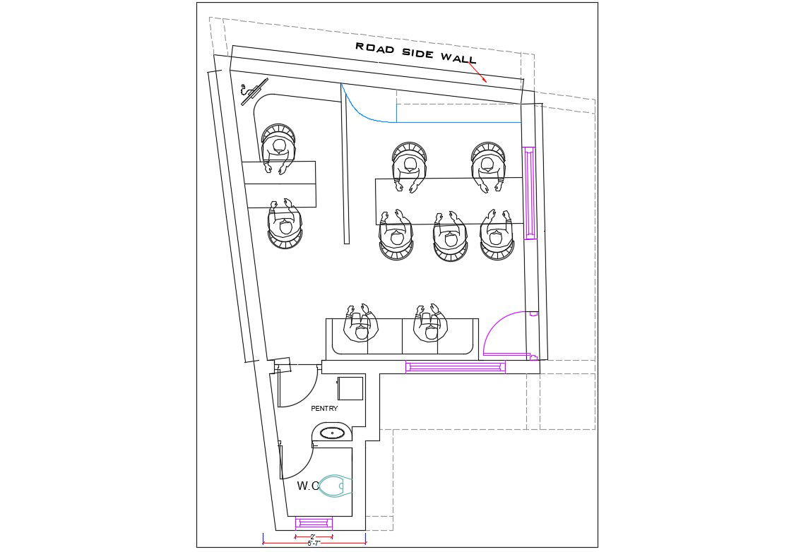 download free CAD drawing of office furniture layout plan CAD drawing shows work desk, waiting area, and pantry with toilet plan.