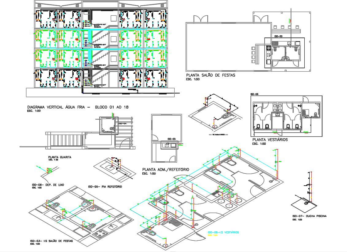 2d CAD drawing details of residential multi-story living apartment sectional design that shows apartment floor level details, apartment staircase, elevators blocks, leveling, washroom layout plan, dimension working set, and various other amenities designed CAD presented file download for free.