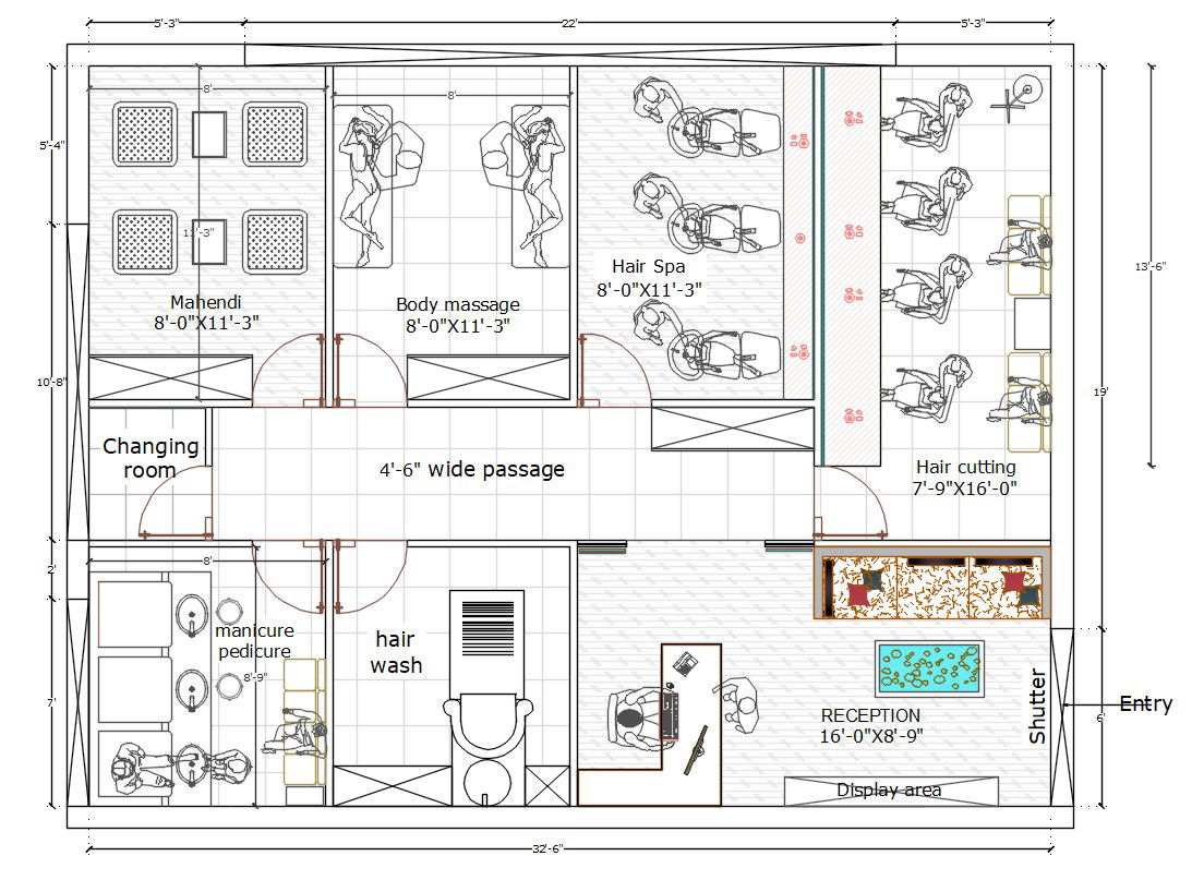 Beauty Salon Plan With Furniture Layout Drawing DWG File