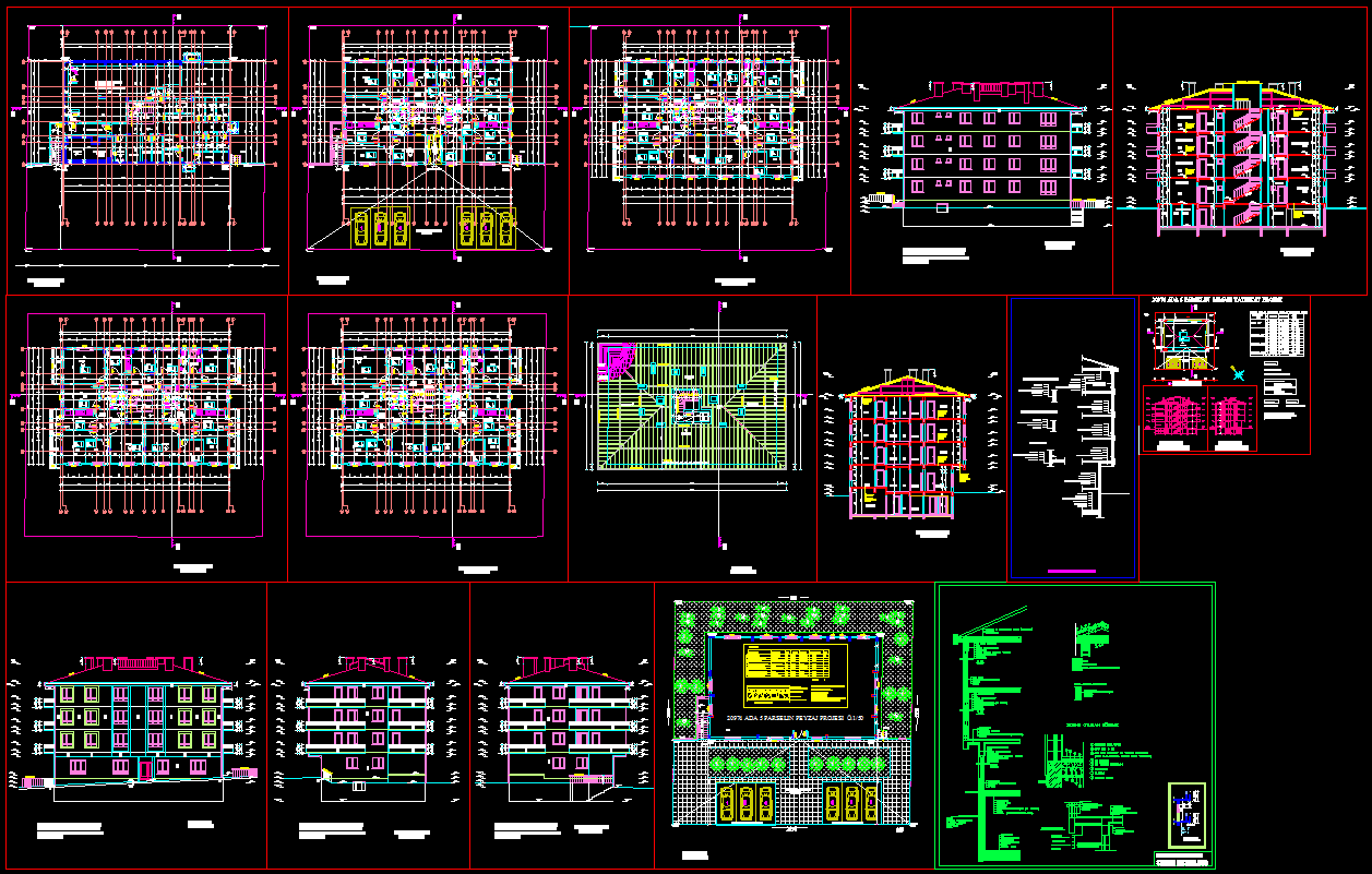 Discover the apartments project CAD drawings in this file, featuring detailed floor layouts, structure design, and elevation plans ideal for modern residential architecture.