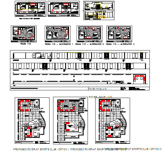 Sport club detail in foyer detail, furniture detail, Diffrent type option rest room, & elevation & lay-out design.