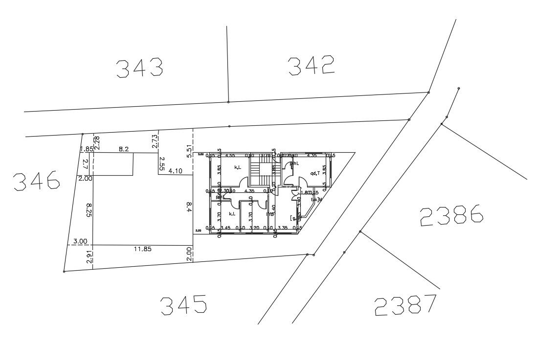 download free DWG file of house site working plan with dimension detail, exiting plot area size, and wide road. this is a simple house final town plan Line drawing.