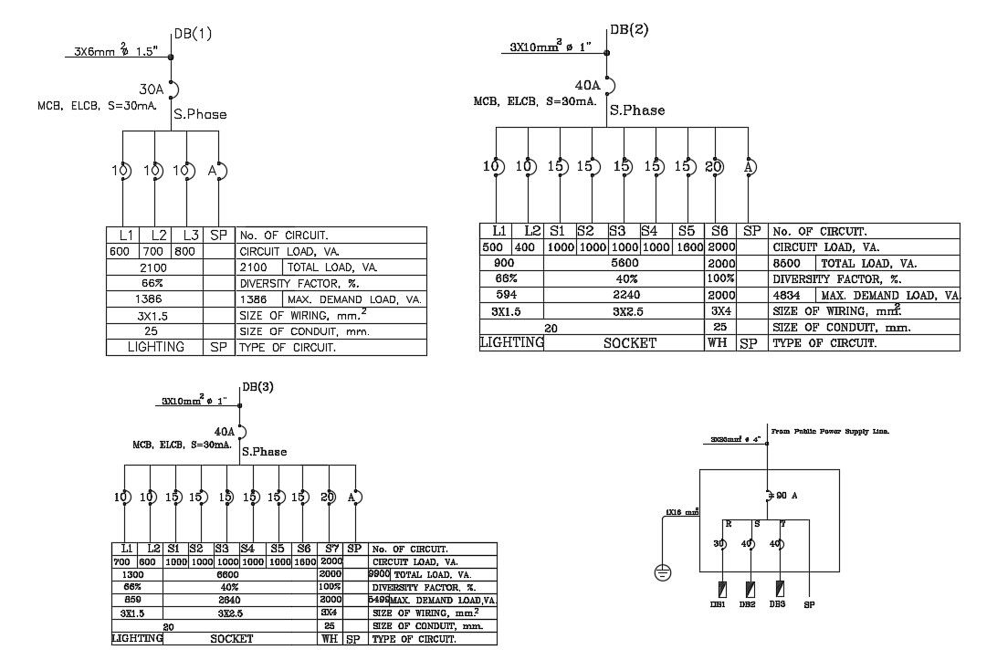 Download free DWG file of meter wiring diagram CAD drawing shows types of circuit, socket, size of wiring and lighting detail.