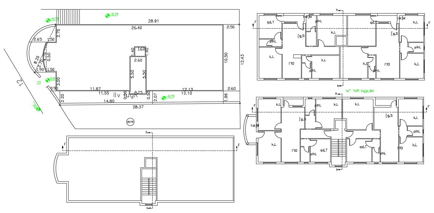 the apartment layout plan has been designed in AutoCAD software, the CAD drawing shows typical layout p[lan and compound wall staircase design with dimension details.