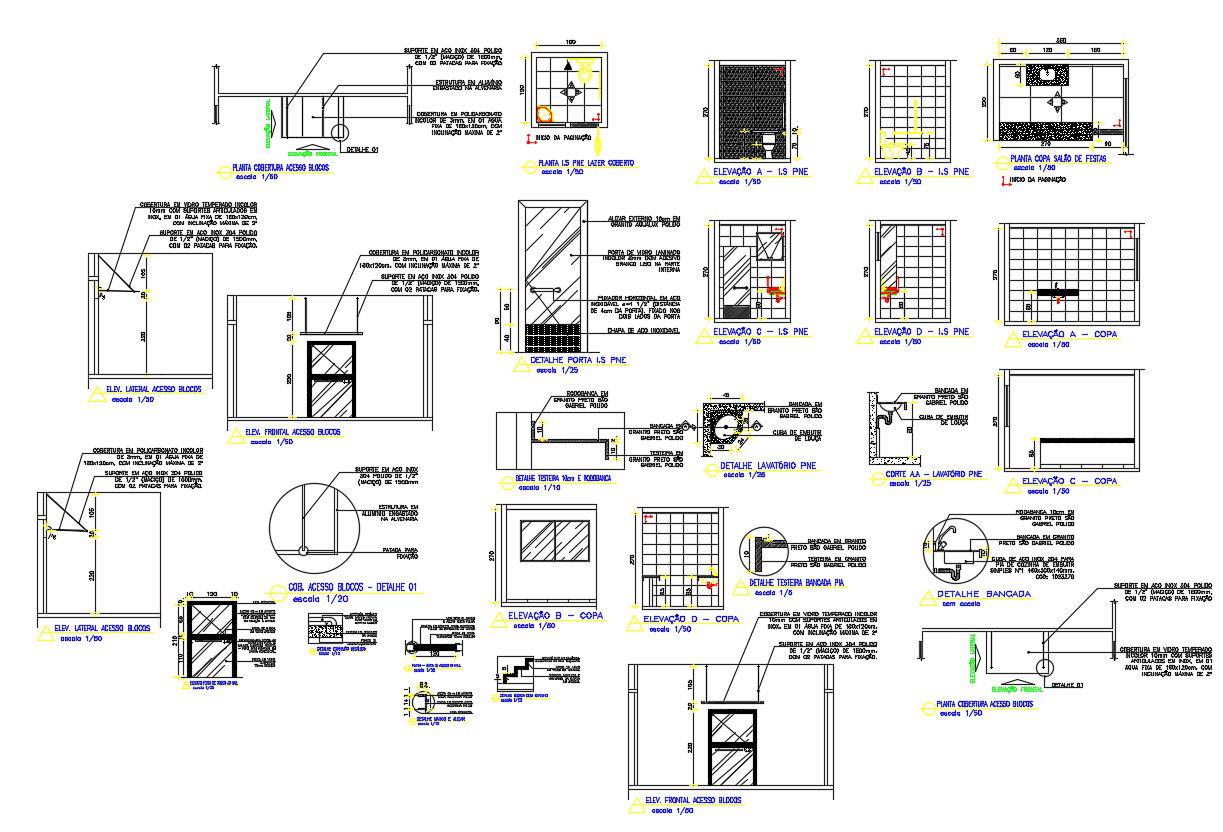 Washroom Design Layout Plan and Sectional 2d AutoCAD Drawing Download