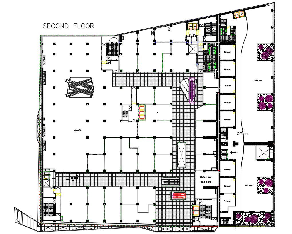 Commercial Building Second Floor Column Layout Plan AutoCAD Drawing Download