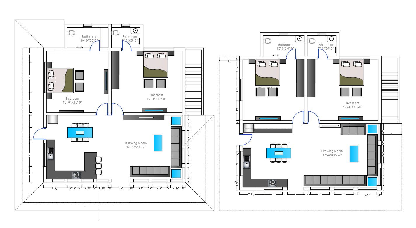 Furniture 2 BHK Residential Bungalow Two Type Options AutoCAD Drawing Download