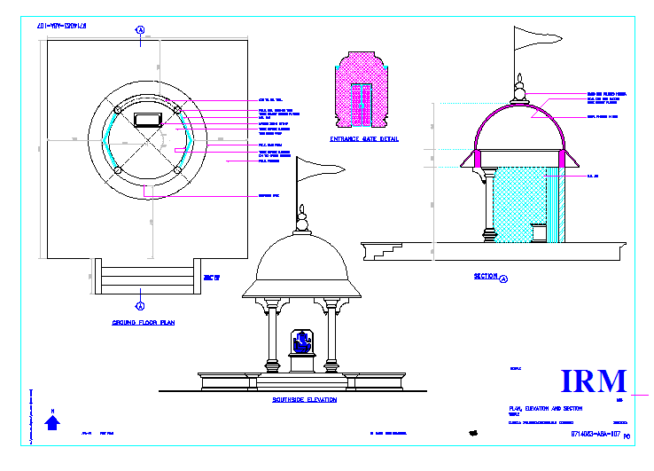 Entrance Gate detail, This Temple in south side elevation, section & lay-out design include the file.