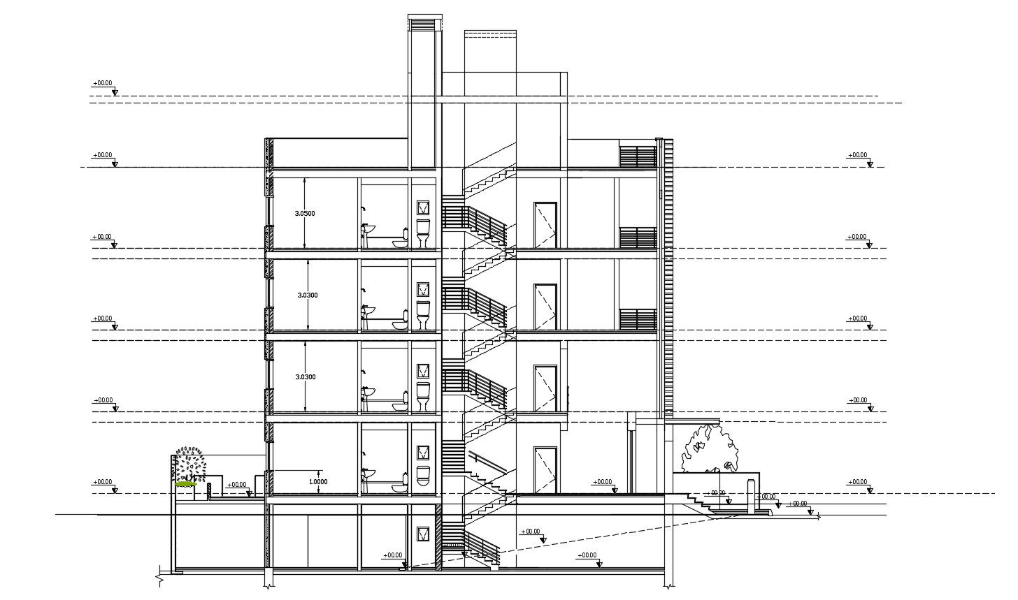 Three Story Apartment Section Design AutoCAD File Free Download; this is the structure stair section details of three-story apartment with floor levels dimension details some toilet sanitary details in it.cad file format download.