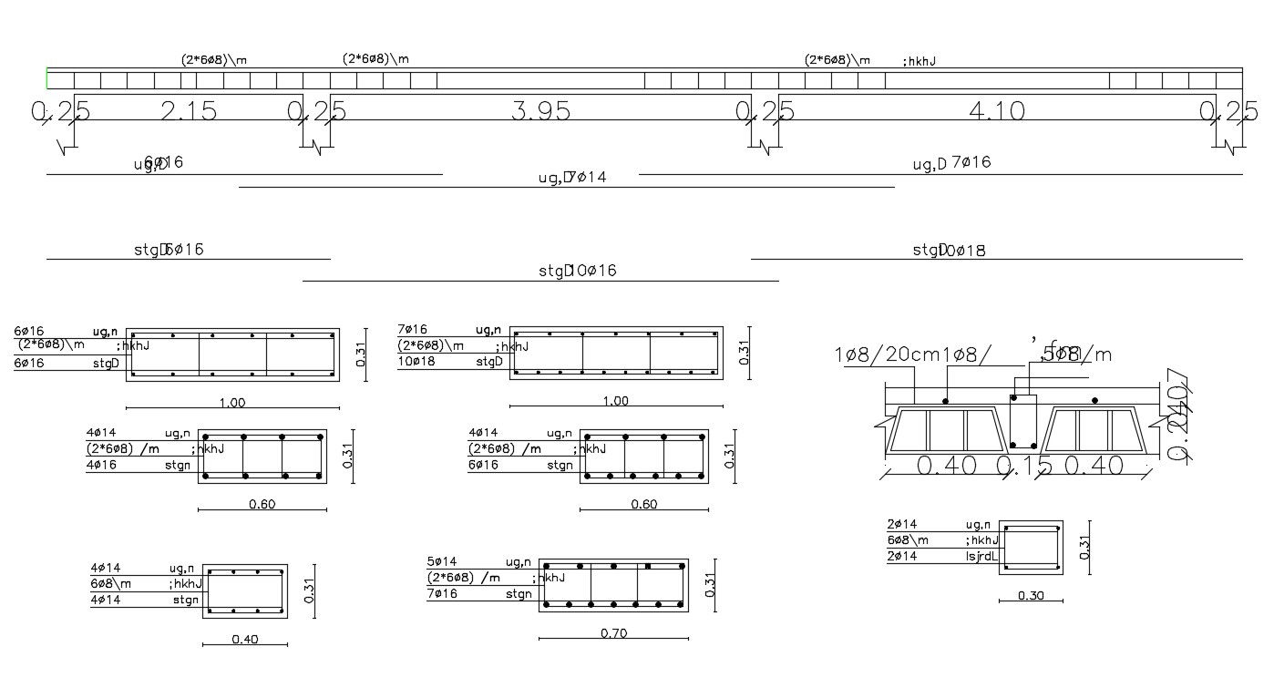 Detailed DWG CAD drawing of a reinforced concrete beam section. Ideal for structural engineers and architects to plan accurate beam dimensions, reinforcement placement, and load-bearing design. Perfect for professional building projects, ensuring precise structural detailing and AutoCAD-ready measurements for construction and design applications.