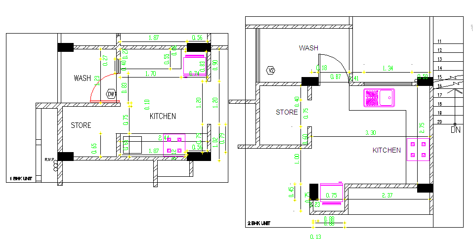 Kitchen lay-out detail with store room, Wash area etc with dimension detail. Kitchen Detail.