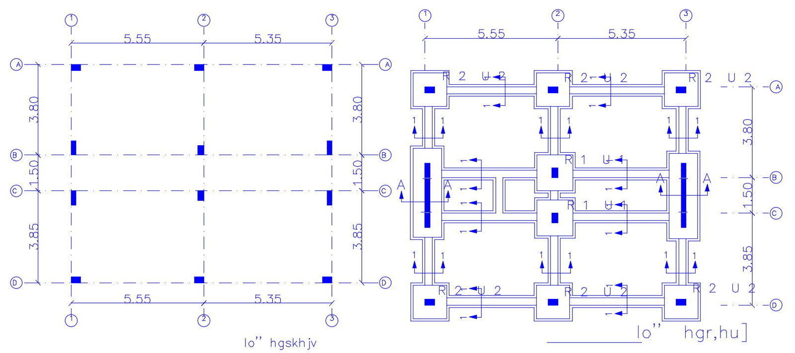this is the excavation plan of building column and shear wall details also centerline plan of column, working dimension details, some section line on the excavation level, download the structure detail drawing.