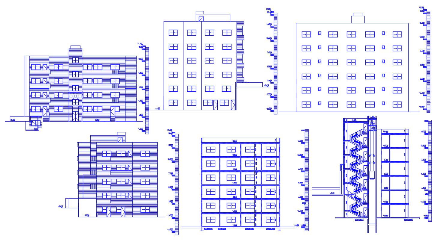 Apartment Building Section And Elevation Design AutoCAD Drawing