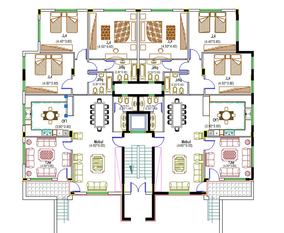 3 Bedroom Apartment Furniture Layout Plan DWG File
