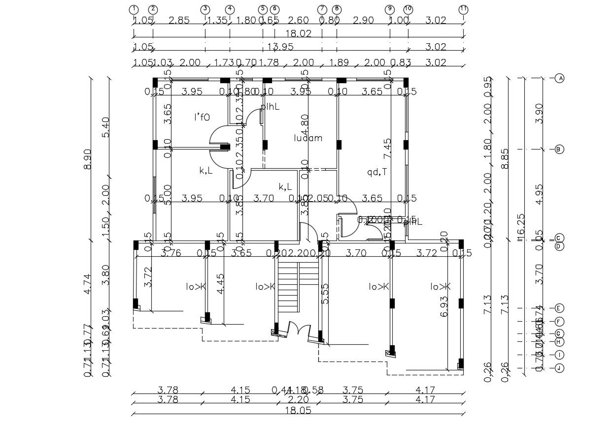 this is the planning of residential building with structure column demarcation, centerline details, working drawing details, and much more other details related to building.