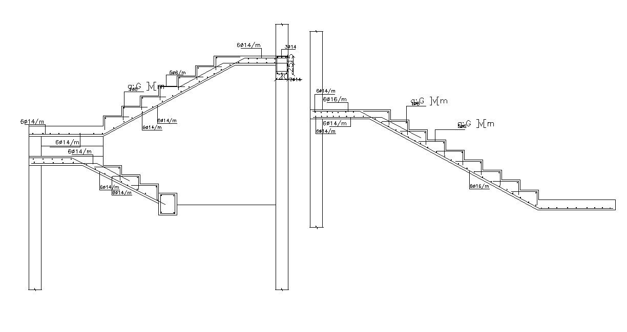 this is the drawing of the stair section with RCC and bars details free download the DWG file and use in architecture project.