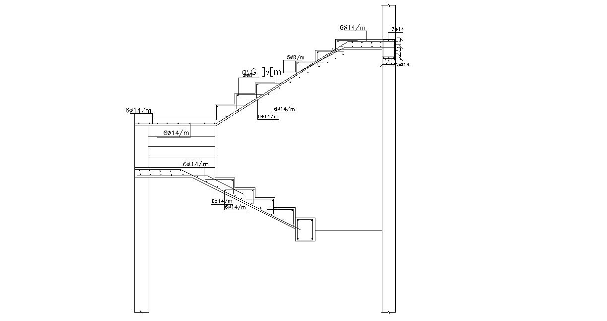 this is the simple DWG drawing of structure RCC stair with reinforcement details, stair landing beam details, download the DWG file format.