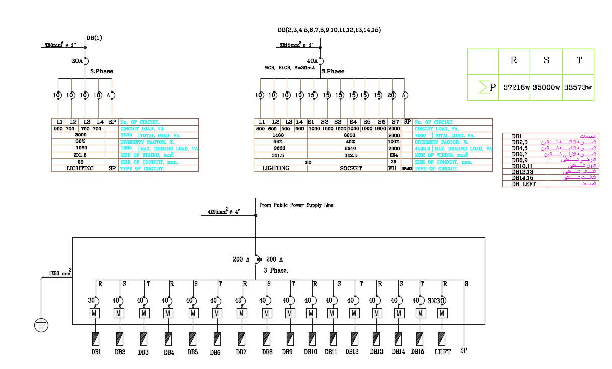 Electrical Power Supply Line Diagram DWG File