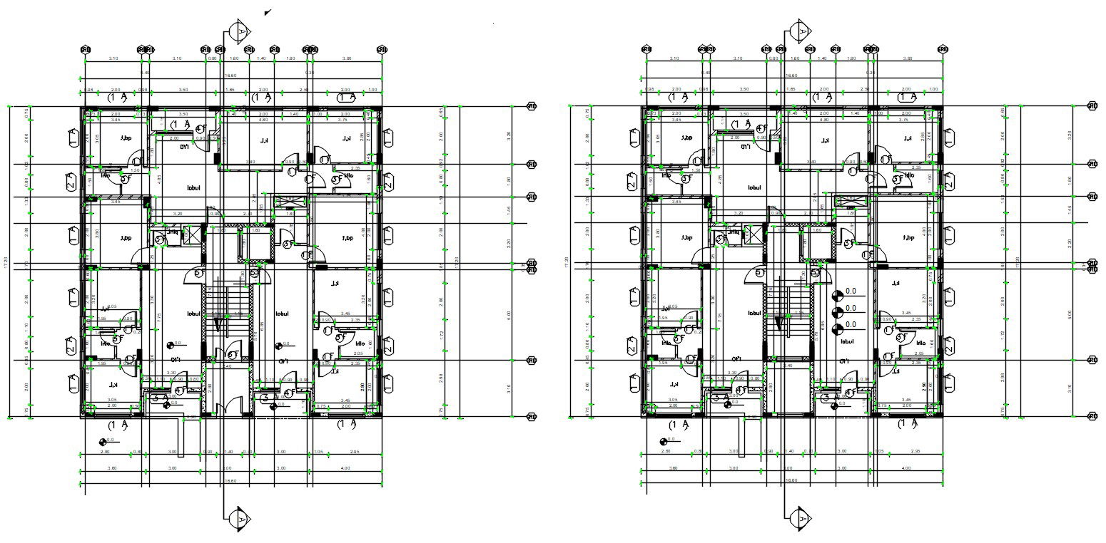 Apartment Layout Plan With Centre Line DWG File