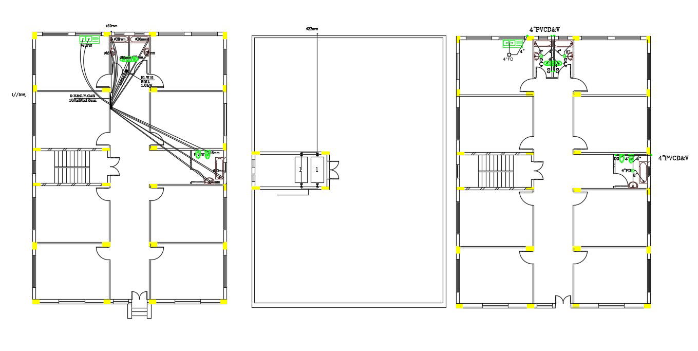This is the commerce building shops floor plan CAD drawing includes plumbing layout plan with drainage line. download free dwg file of commercial building beam layout plan.