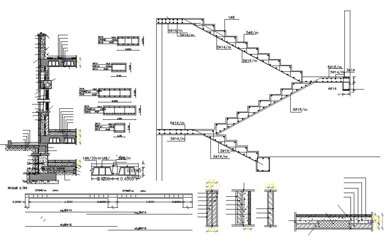 The main column reinforcing takes precedence over the secondary beam. The load transfer sequence in RCC structure follows the following order slab to beam, beam to the column. download free DWG file of RCC structure drawing.