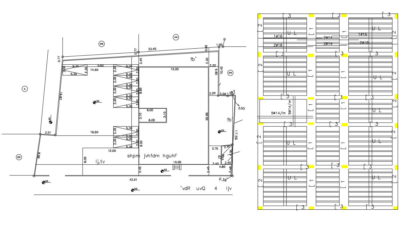 Download free DWG file of commercial building placing plan, beam layout plan and RCC slab joint with reinforcement drawing in CAD drawing.