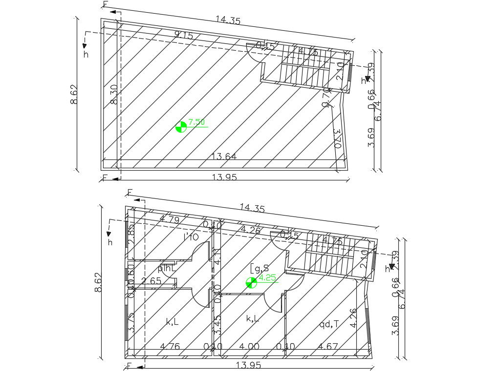 Download free DWG file of house ground floor and terrace plan with all dimension details. this is 2 bedroom house plan Autocad drawing.