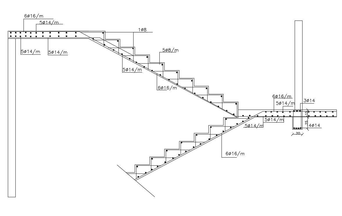 Download free DWG file of RCC staircase section drawing DWG file. this drawing has been drafted in AutoCAD format.