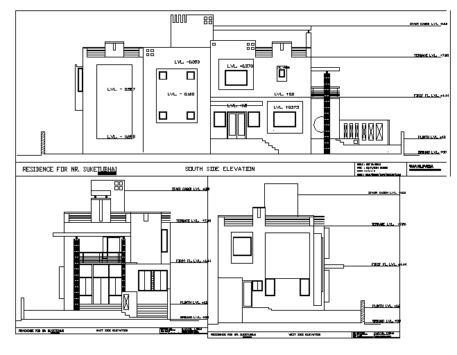 Residential House South side Elevation & All level Detail with dimension. 2 floor elevation design.