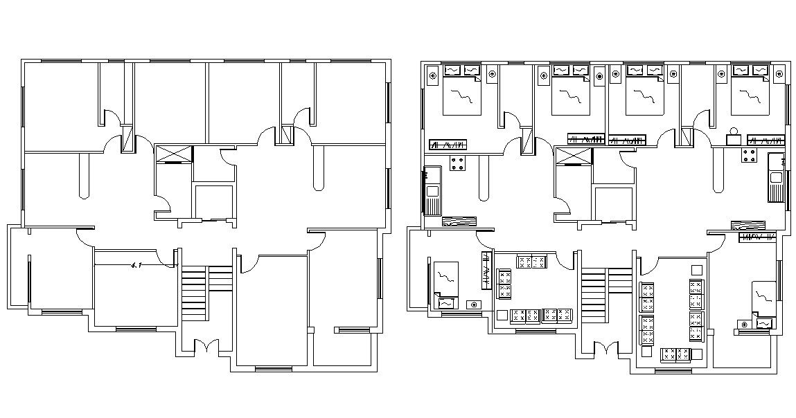 Fully Furnished Floor Plans Of 3BHK Apartment DWG Drawing
