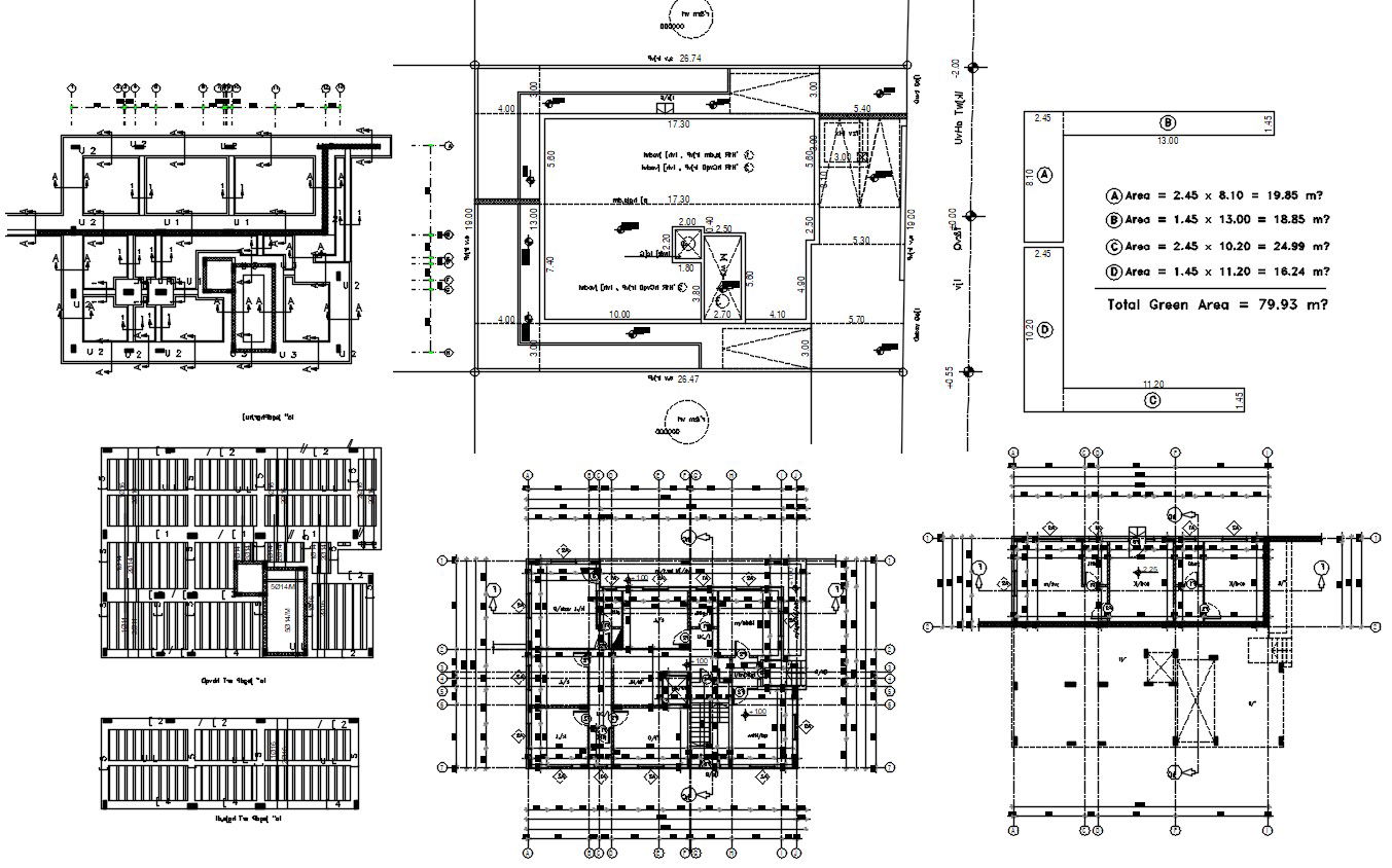 2d CAD drawing of construction working plan includes foundation layout plan, site total area detail, column layout plan and RCC slab joint bar with dimension detail. download DWG file of house construction detail CAD drawing.