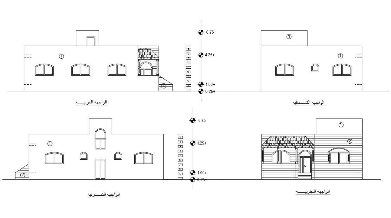 Download free DWG file of single storey house building elevation design with dimension detail in CAD drawing. this drawing has been drafted in AutoCAD software format.
