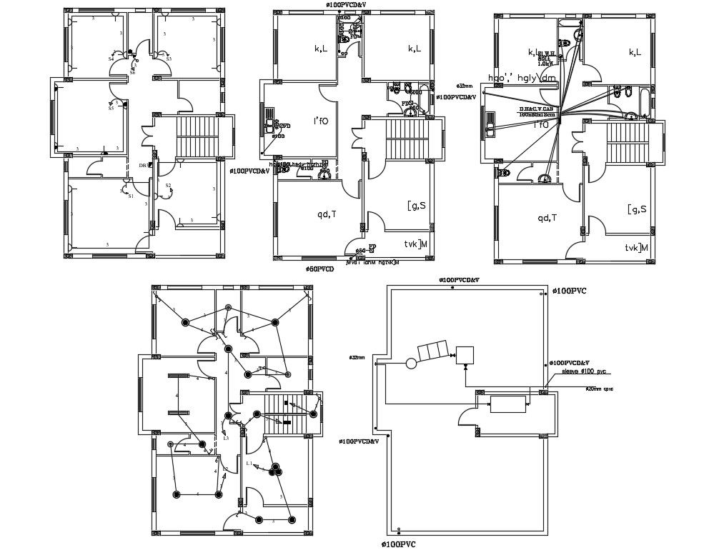 Residence House Layout Plan With Electrical And Plumbing Design