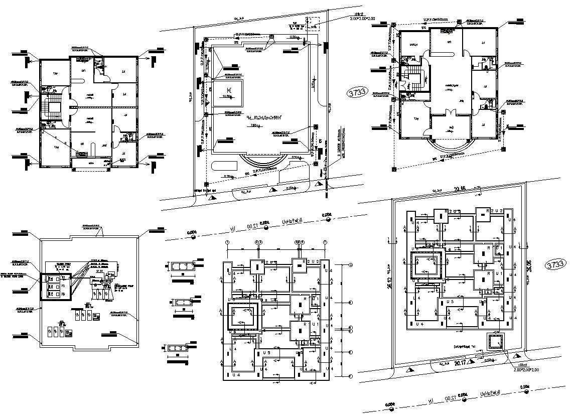 this is the drawing of hostel building floors plan with column footing section, centerline plan, beam reinforcement details, site and building demarcation desing plan.some texting details related to building.