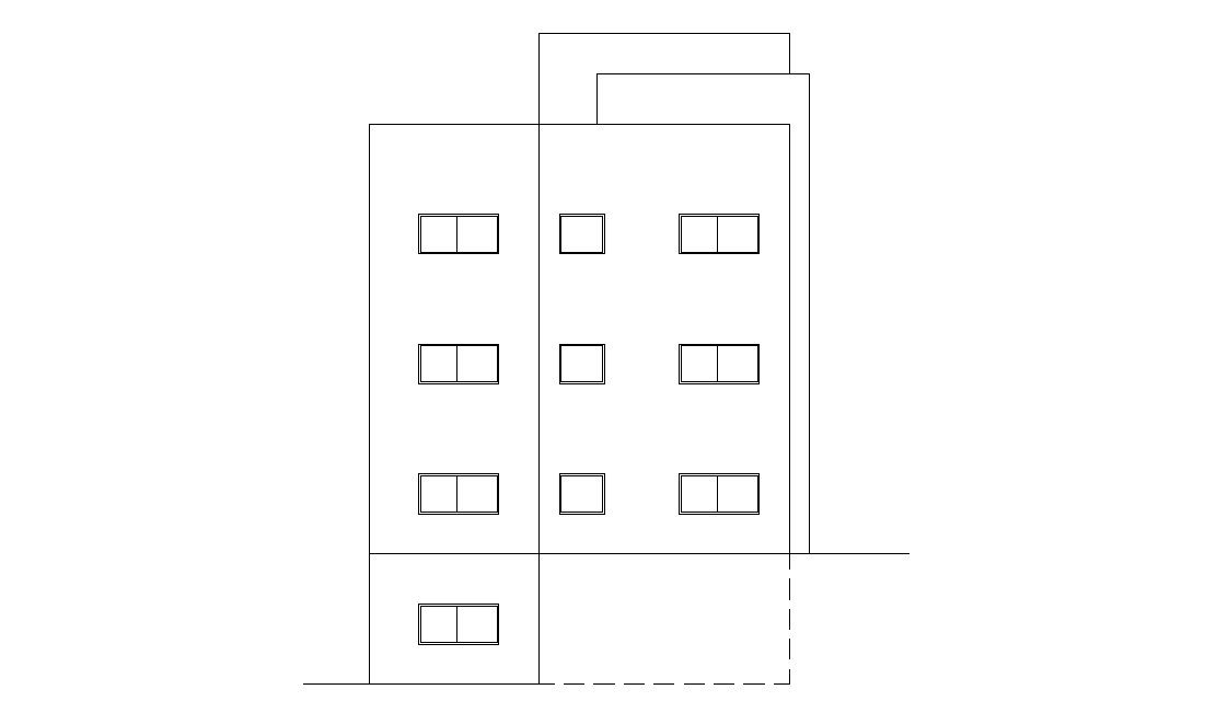 Download Free free DWG file of simple apartment building line elevation design which shows floor level detail.